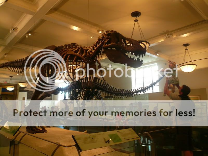 this little girl is the cutest. her dad is feeding her to the t-rex while mum takes a picture. and dad convinced her to put on a really scared face. =)